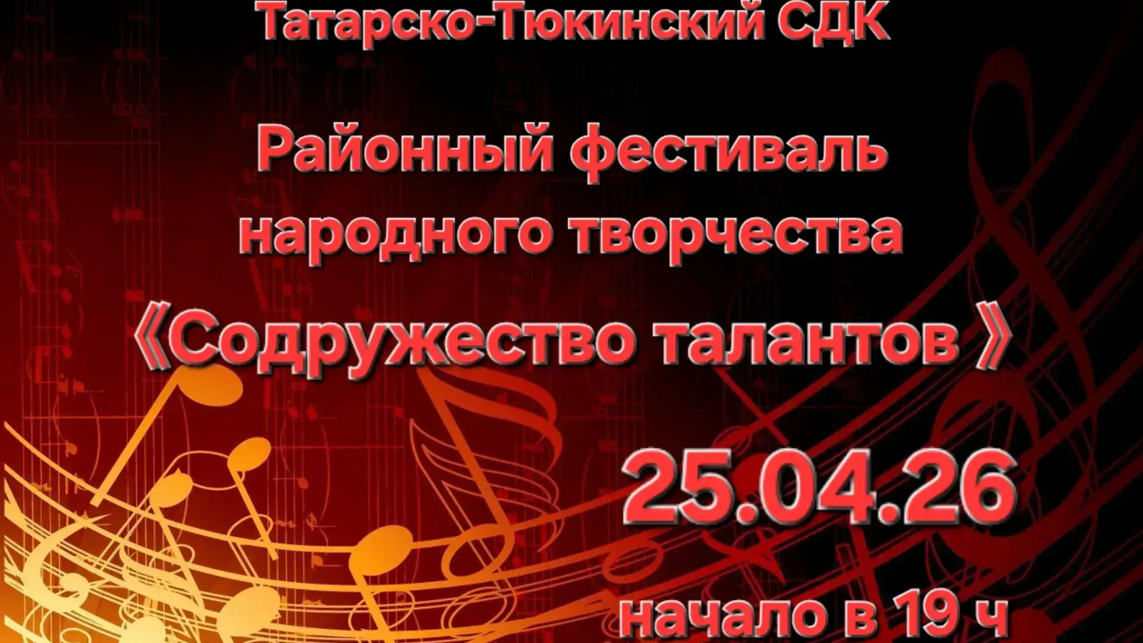 25.04.2026 года в 19:00 в деревне Татарские Тюки состоится концерт "Содружество талантов".